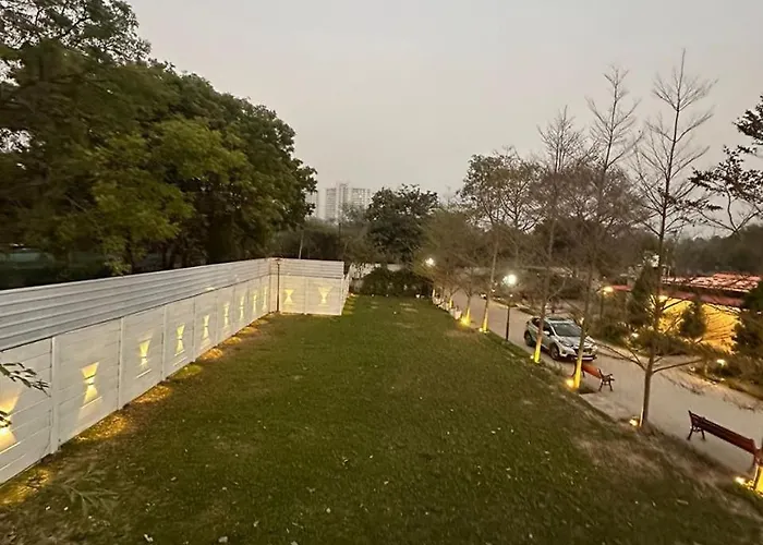 庭園の景色を見渡すグルガウン Venus F Farmヴィラは、Ansal Universityなどの教育施設から2.8km離れた所の場所に位置しています。